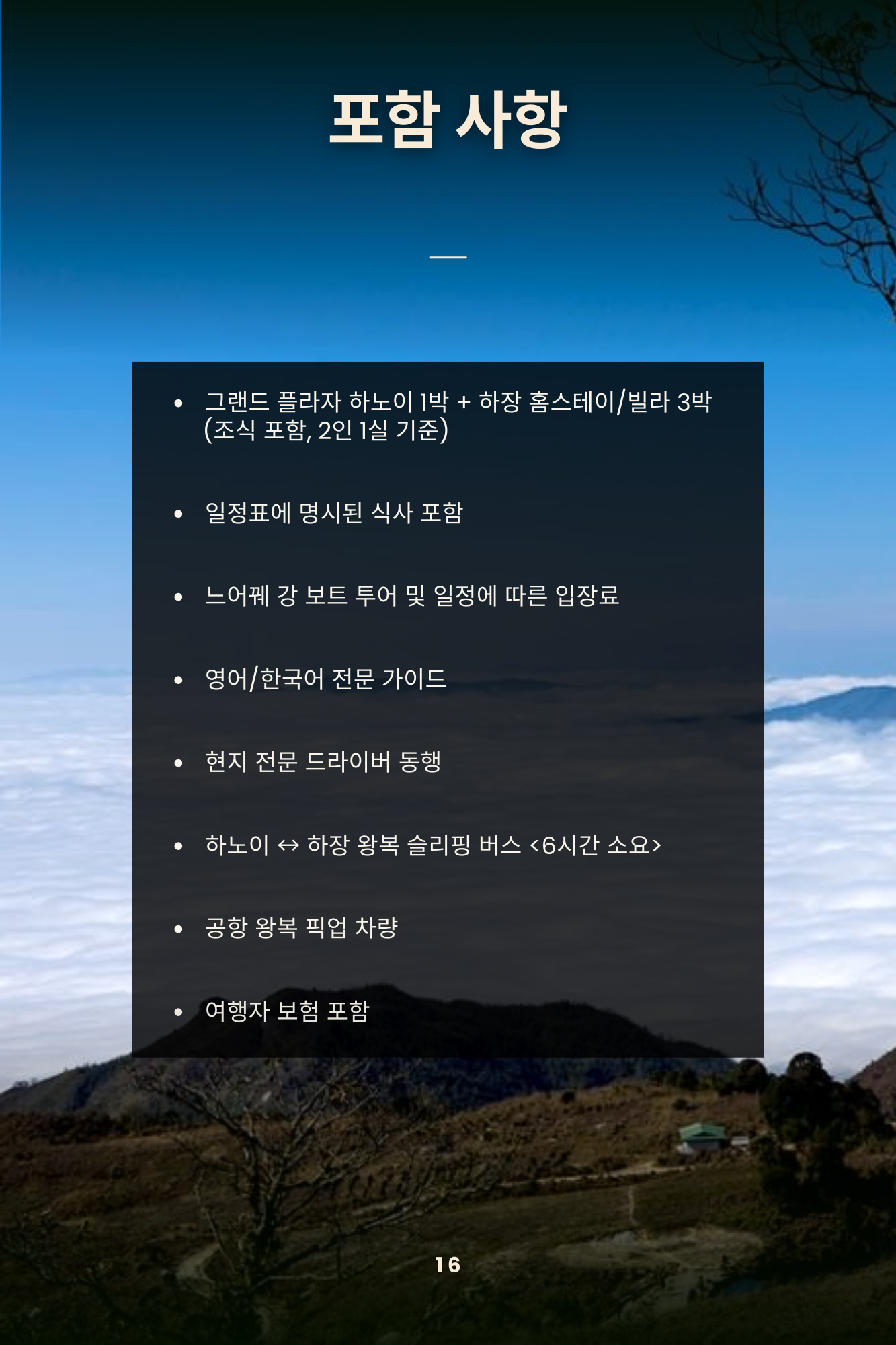 • 그랜드플라자하노이호텔 1박, 하장에서 홈스테이/리조트 3박.
