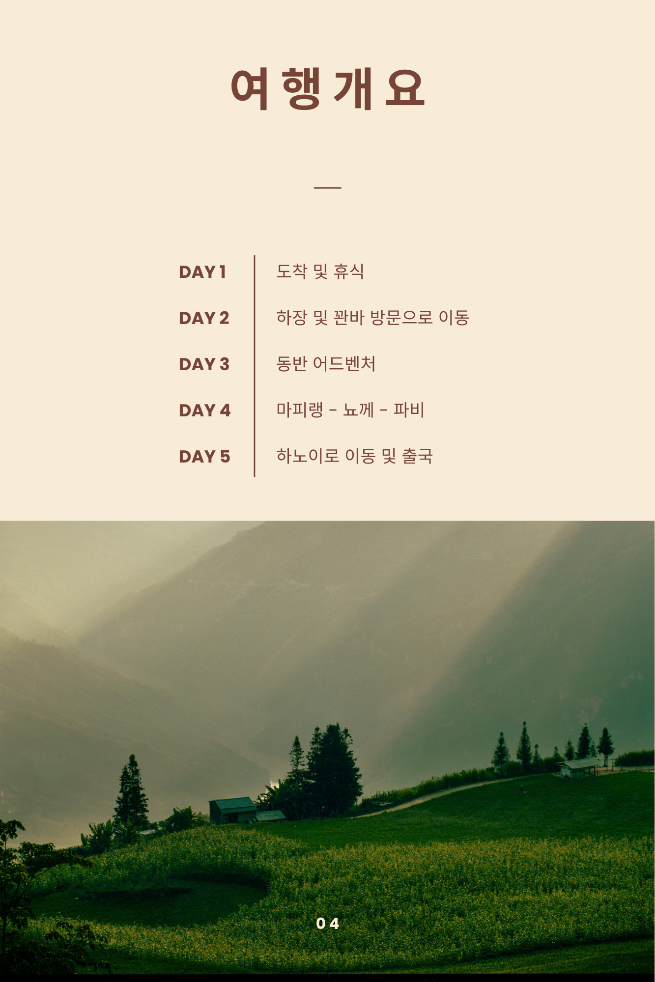 • 1일차: 도착 및 휴식