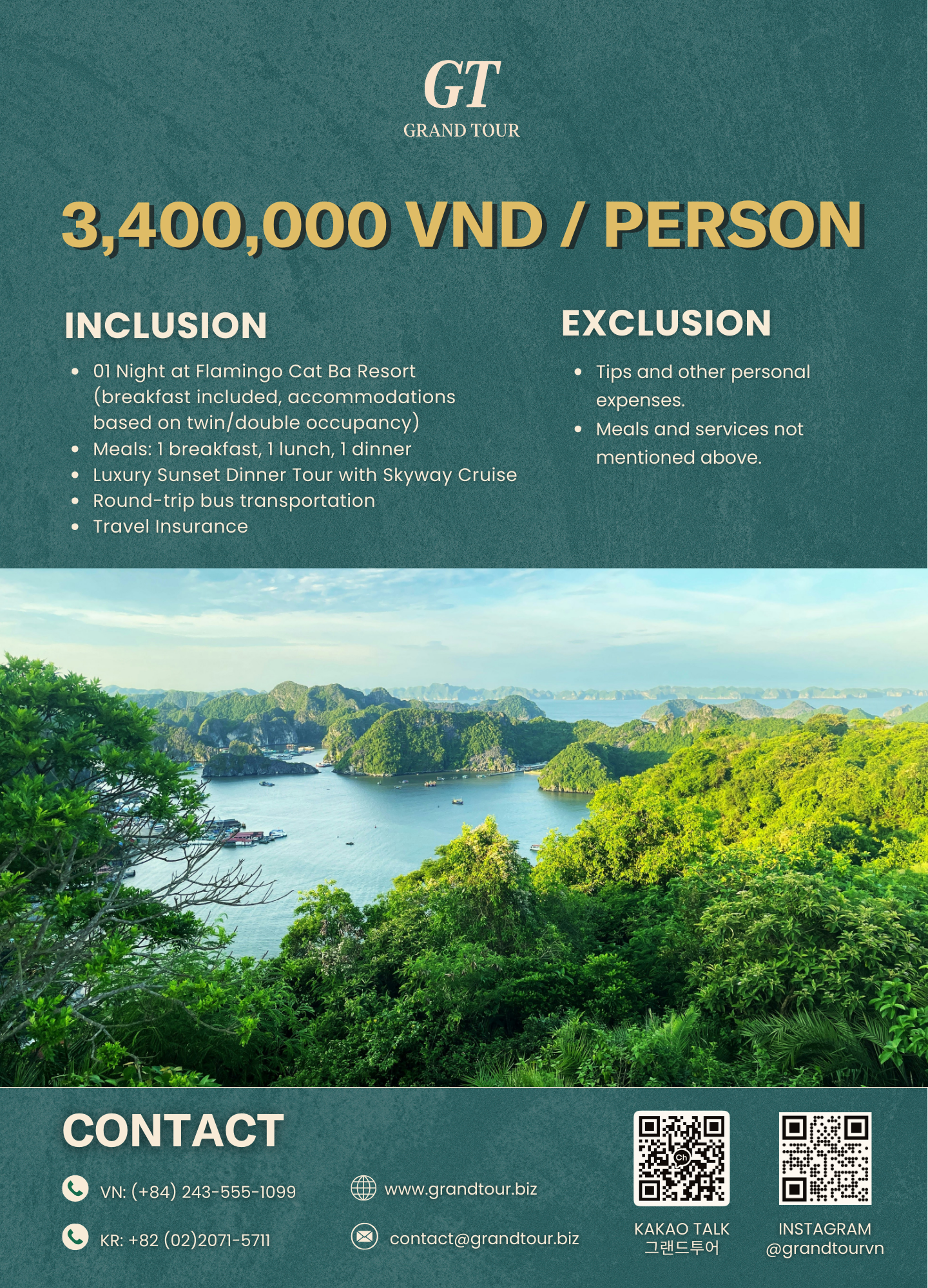 01 Night at Flamingo Cat Ba Resort (breakfast included, accommodations based on twin/double occupancy)